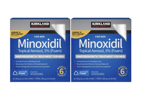 Kirkland Signature 5% Minoxidil Foam is an extra-strength, unscented hair regrowth treatment for men with thinning hair on the top of the scalp. Clinically proven to help reactivate hair follicles, promoting thicker, fuller hair.